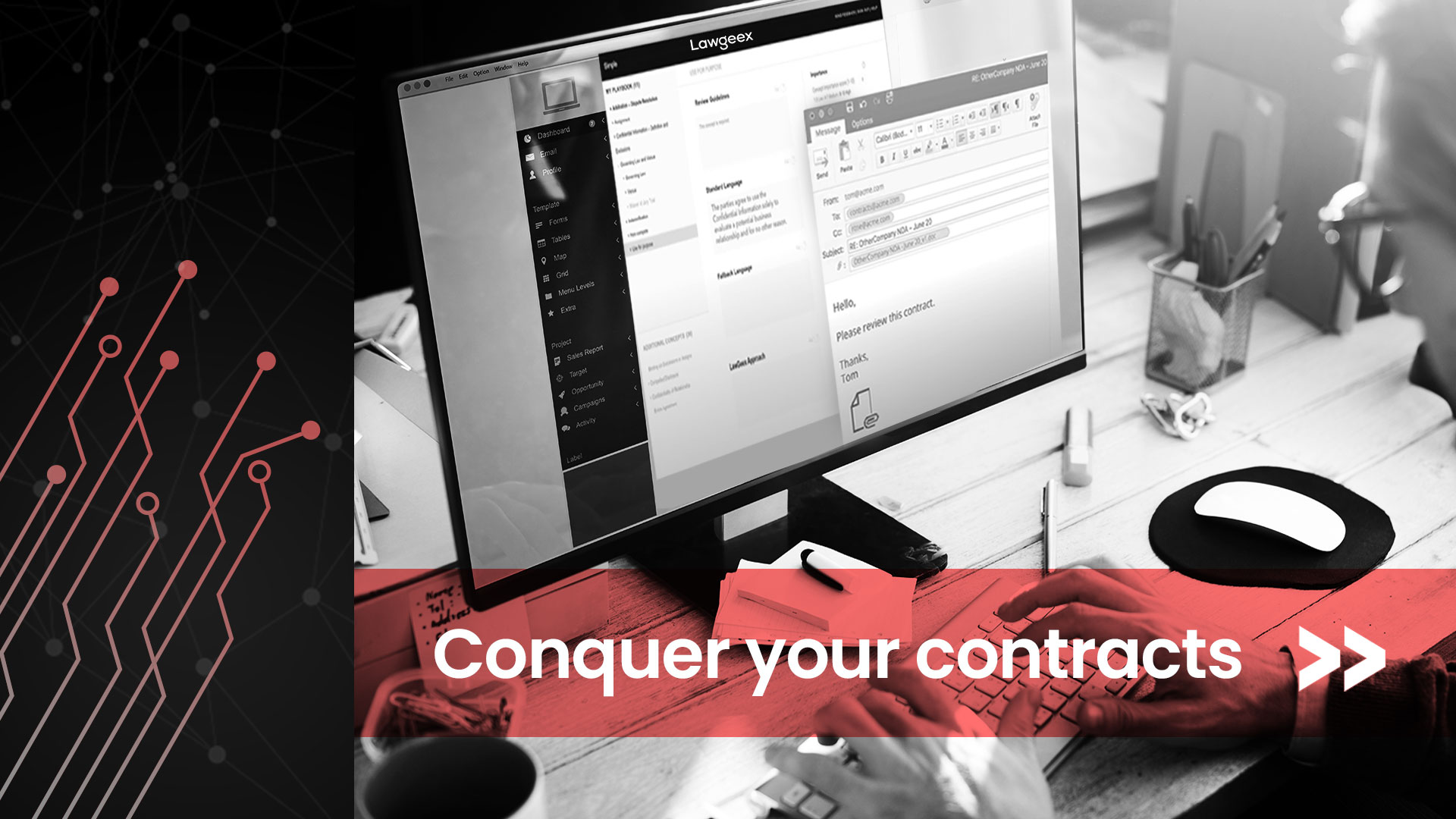 Lawgeexは、2014年に米国(イスラエル発)で設立された契約レビュー自動化プラットフォームである。特許取得済みのAI技術を活用し、企業が定めた法的ポリシーに基づいて契約書を自動的にレビュー・レッドラインする「マネージドAI」アプローチを特徴とする。法務チームの契約レビュー業務を大幅に効率化し、Forresterの調査レポートでは209%のROIが実証されている。ただし、近年は経営上の課題も報じられており、市場での動向に注意が必要である。