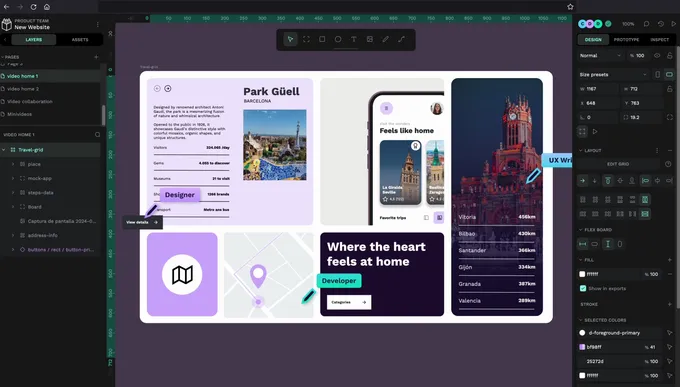 CSS GridやFlexboxなどWeb標準のレイアウト技術をネイティブサポートしているため、デザイナーが作成したレイアウトが開発者にそのまま伝わります。InspectパネルからCSSコードを直接コピーでき、デザインと実装の乖離を最小限に抑えられます。