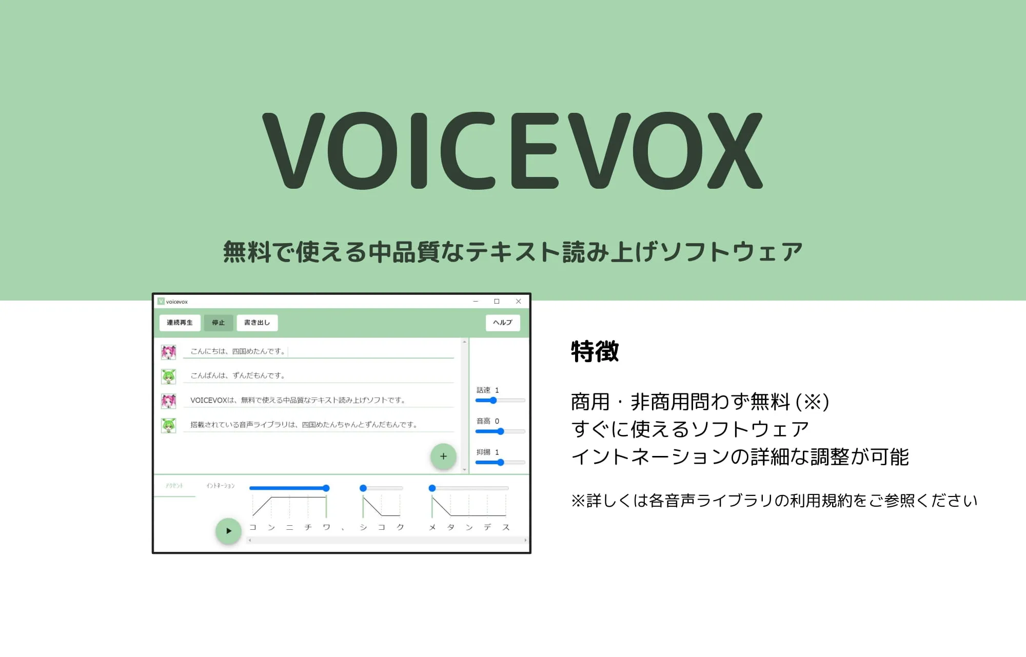 - ▸無料で高品質な日本語音声合成を利用したい個人開発者・学生